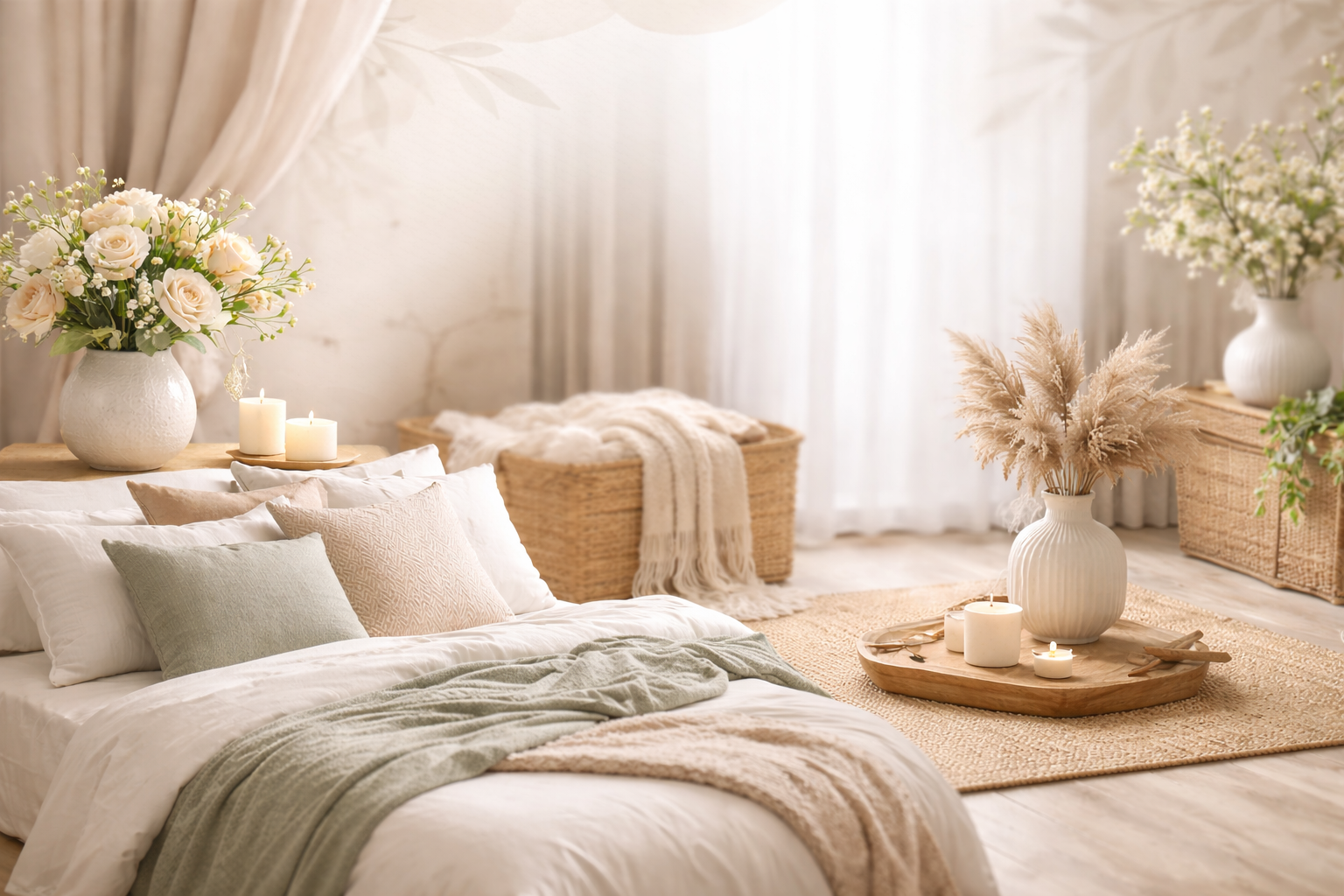 Chăn ga Tencel TE5023 cao cấp phối cảnh phòng ngủ hiện đại