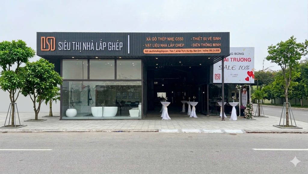 Từ nền tảng kinh nghiệm thực chiến, Siêu Thị Nhà Lắp Ghép là nơi sản xuất & cung cấp vật liệu cấu tạo nhà lắp ghép: khung, trần – tường – sàn đến nội thất và decor hoàn thiện. Sản phẩm không chỉ đạt tiêu chuẩn kỹ thuật mà còn đã được ứng dụng và kiểm nghiệm trực tiếp qua công trình thực tế.
