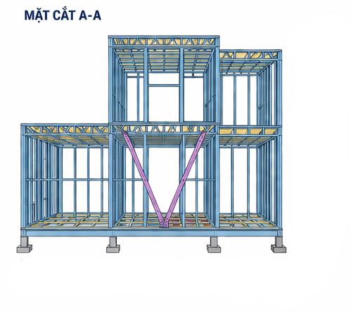 Cấu tạo hệ khung thép G550 2 tầng