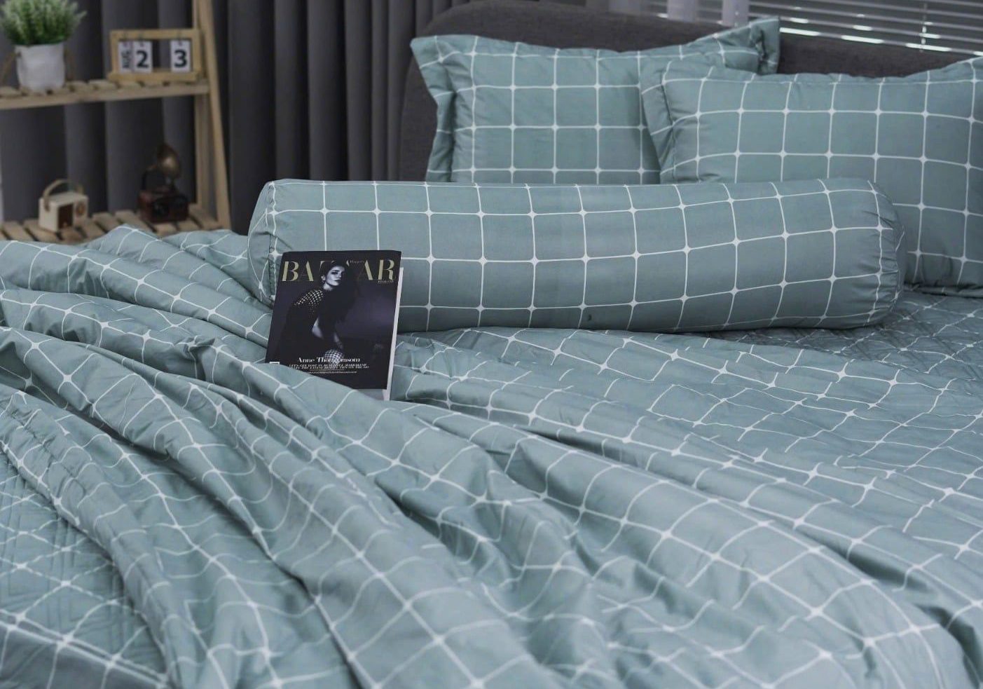 Kết hợp cùng thiết kế họa tiết kẻ ô hiện đại trên nền xanh pastel dịu nhẹ, sản phẩm không chỉ tạo cảm giác mát mẻ, thư giãn mà còn giúp không gian phòng ngủ trở nên gọn gàng và tinh tế hơn. Với sự cân bằng giữa tính thẩm mỹ và tính ứng dụng, bộ chăn ga PI5672 phù hợp cho nhiều nhu cầu sử dụng khác nhau, từ gia đình đến homestay hay căn hộ cho thuê.