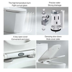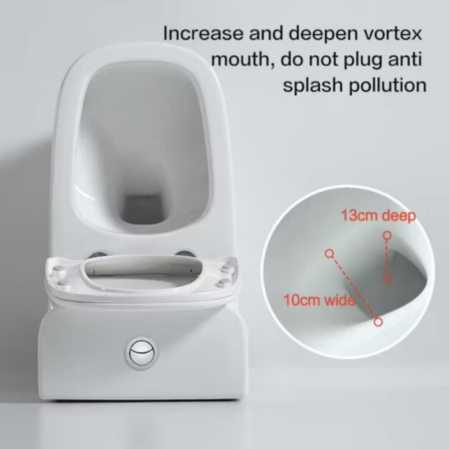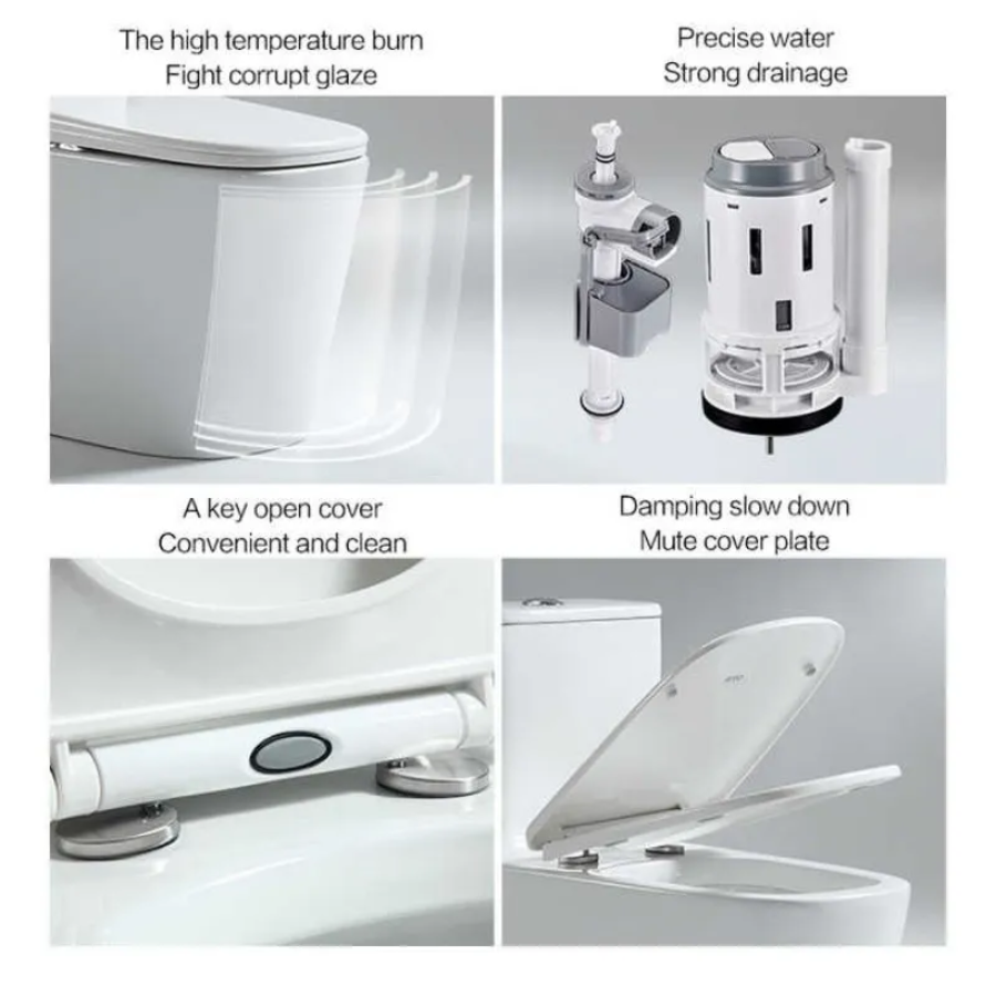 - Nắp UF Chống Va Đập và Đóng Êm: Bồn cầu đi kèm với nắp UF chất lượng cao (High-quality UF lid). Chất liệu này có khả năng chống áp lực và va đập (resistant to pressure and impact), không dễ bị nứt hoặc biến dạng, đảm bảo tuổi thọ dài lâu. Tính năng damping slow-close (đóng êm) đảm bảo nắp đóng nhẹ nhàng, yên tĩnh.
