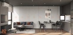 Trong ngôn ngữ thiết kế đương đại, màu ghi đậm không chỉ là một sắc thái, mà là biểu tượng của sự trưởng thành và tinh tế. Không gian phòng khách DSDhome được thiết kế để trở thành tâm điểm của sự sang trọng, nơi phong cách tối giản (Minimalism) lên ngôi.