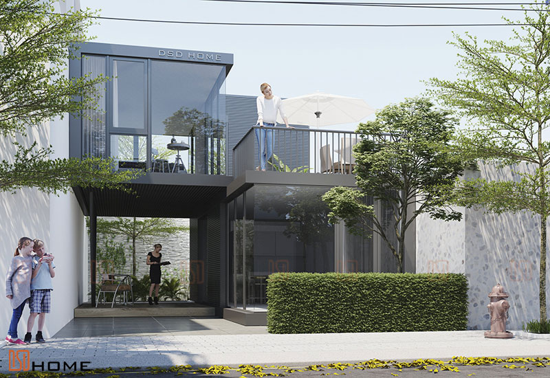 Với mong muốn mang đến không gian linh hoạt và đa dạng công năng, không phức tạp như nhà truyền thống, DSDhome ra mắt giải pháp nhà lắp ghép thông minh với kỹ thuật sắp xếp từ module, dễ dàng lắp đặt, lên tầng và sở hữu thiết kế thẩm mỹ cao. Thiết kế nhà lắp ghép 2 tầng 64m2 là sự kết hợp hài hoà giữa nét hiện đại và truyền thống khi sở hữu không gian nghỉ dưỡng hiện đại và mái hiên gần gũi thiên nhiên. Các module được sắp xếp lên tầng lệch khối một cách sáng tạo, tiện nghi và đầy đủ công năng.