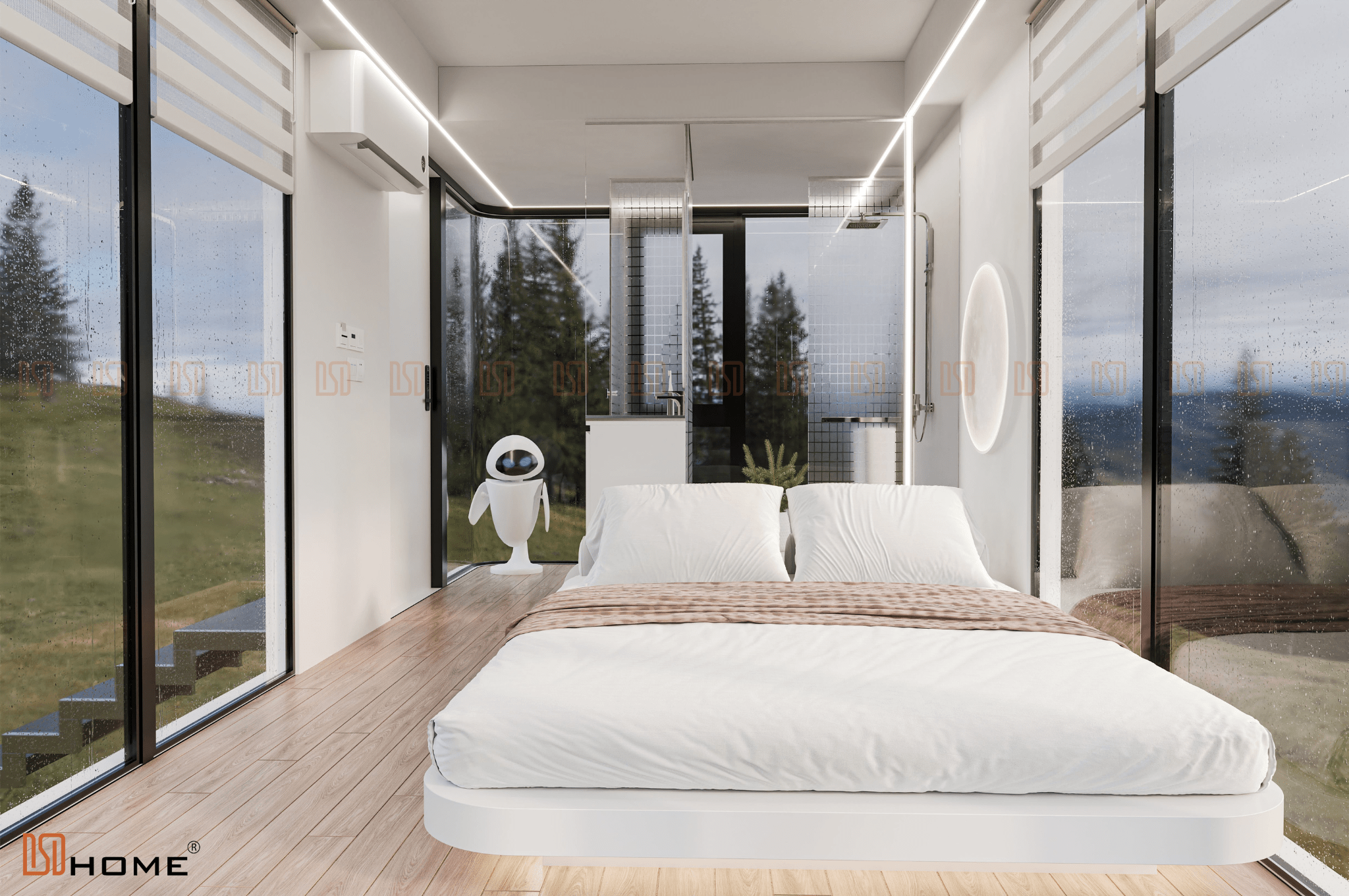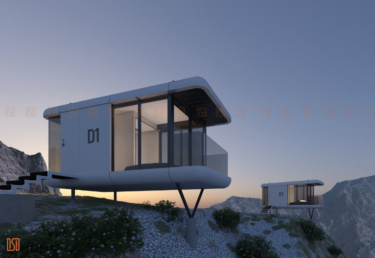 Lấy ý tưởng từ những chiếc phi thuyền không gian, nhà lắp ghép Cabin D1 là mẫu sản phẩm mới nhất 2023 với thiết kế đầy sáng tạo từ tương lai. Mang phong cách kiến trúc vị lai độc đáo và sáng tạo, nhà Cabin D1 sẽ là một điểm nhấn riêng tạo nên cảnh quan bắt mắt trên mọi địa hình. Với thiết kế mới Cabin D1, DSDhome mong muốn mang đến giải pháp độc đáo, tối ưu chi phí và tạo được dấu ấn riêng cho các dự án kinh doanh homestay, resort và khu nghỉ dưỡng.