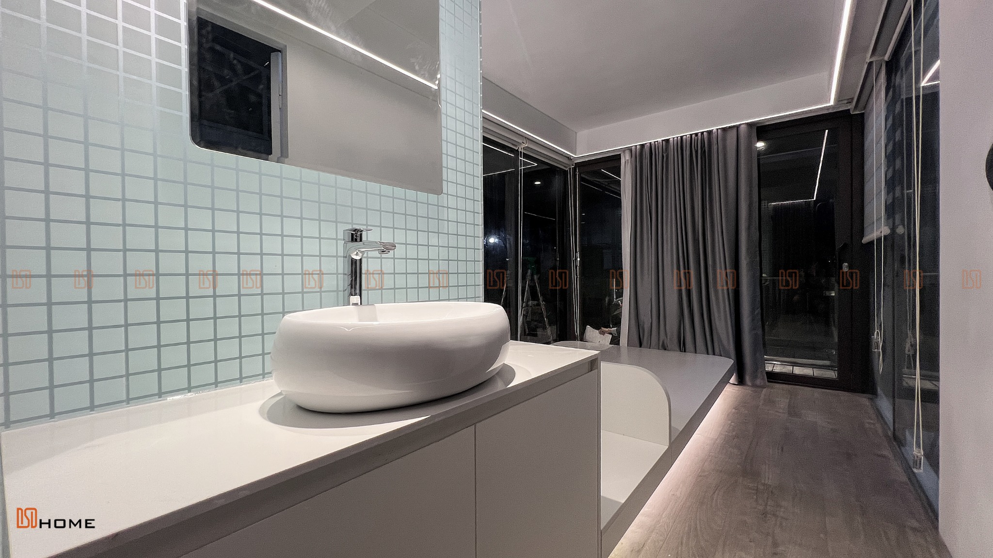 - 1 nhà vệ sinh: Đầy đủ thiết bị vệ sinh lavabo, tủ lavabo, gương, vòi nước