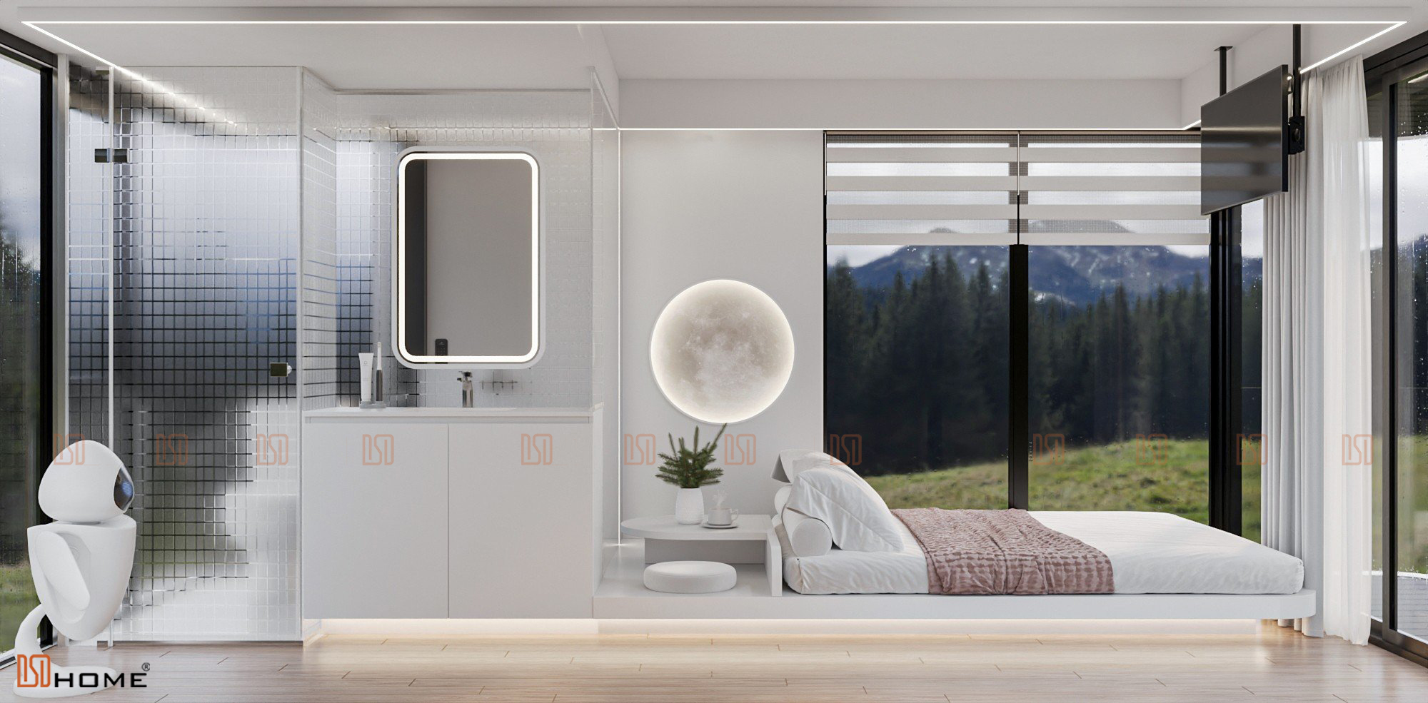- Phòng khách – ngủ: Giường ngủ + Bàn uống trà