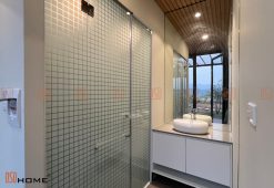 Hai khu vệ sinh chung dành cho bốn phòng được thiết kế đầy đủ tiện nghi như lavabo, bồn cầu và phòng tắm đứng, đáp ứng tốt nhu cầu sử dụng của du khách.