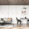 Màu sắc chủ đạo: Tone gỗ óc chó nâu đậm chiếm chủ đạo ở trần nan gỗ xám và hệ tủ kệ, kết hợp hài hòa với mảng tường ghi sáng, tạo nên chiều sâu thị giác đầy ấn tượng.