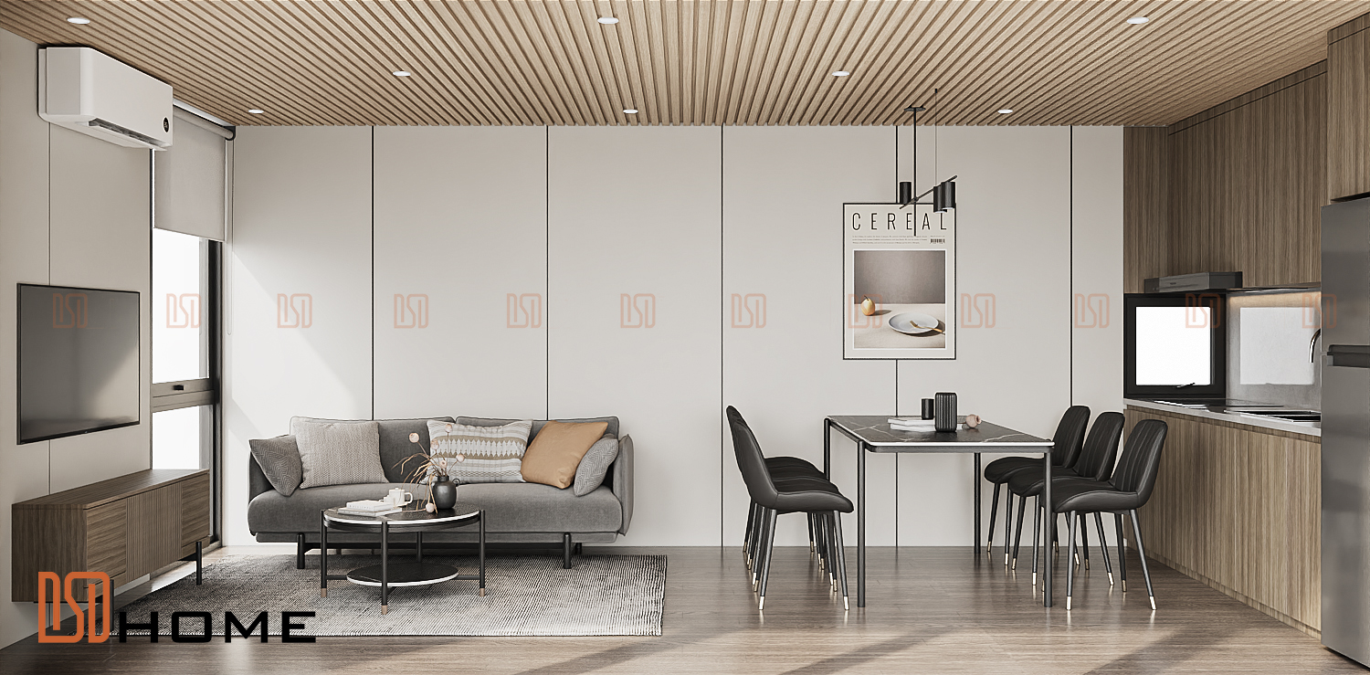 Trong ngôn ngữ thiết kế đương đại, màu Sồi sáng không chỉ là một sắc thái, mà là biểu tượng của sự trưởng thành và tinh tế. Không gian phòng khách DSDhome được thiết kế để trở thành tâm điểm của sự sang trọng, nơi phong cách tối giản (Minimalism) lên ngôi.