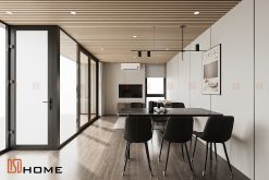 Trần nhà hiện đại: Sử dụng trần lam gỗ nhựa có khả năng cách âm, cách nhiệt, chống ẩm, chống mối mọt và đặc biệt thân thiện với môi trường.