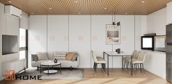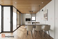 • Trần nhà hiện đại: Sử dụng trần lam gỗ nhựa có khả năng cách âm, cách nhiệt, chống ẩm, chống mối mọt và đặc biệt thân thiện với môi trường.