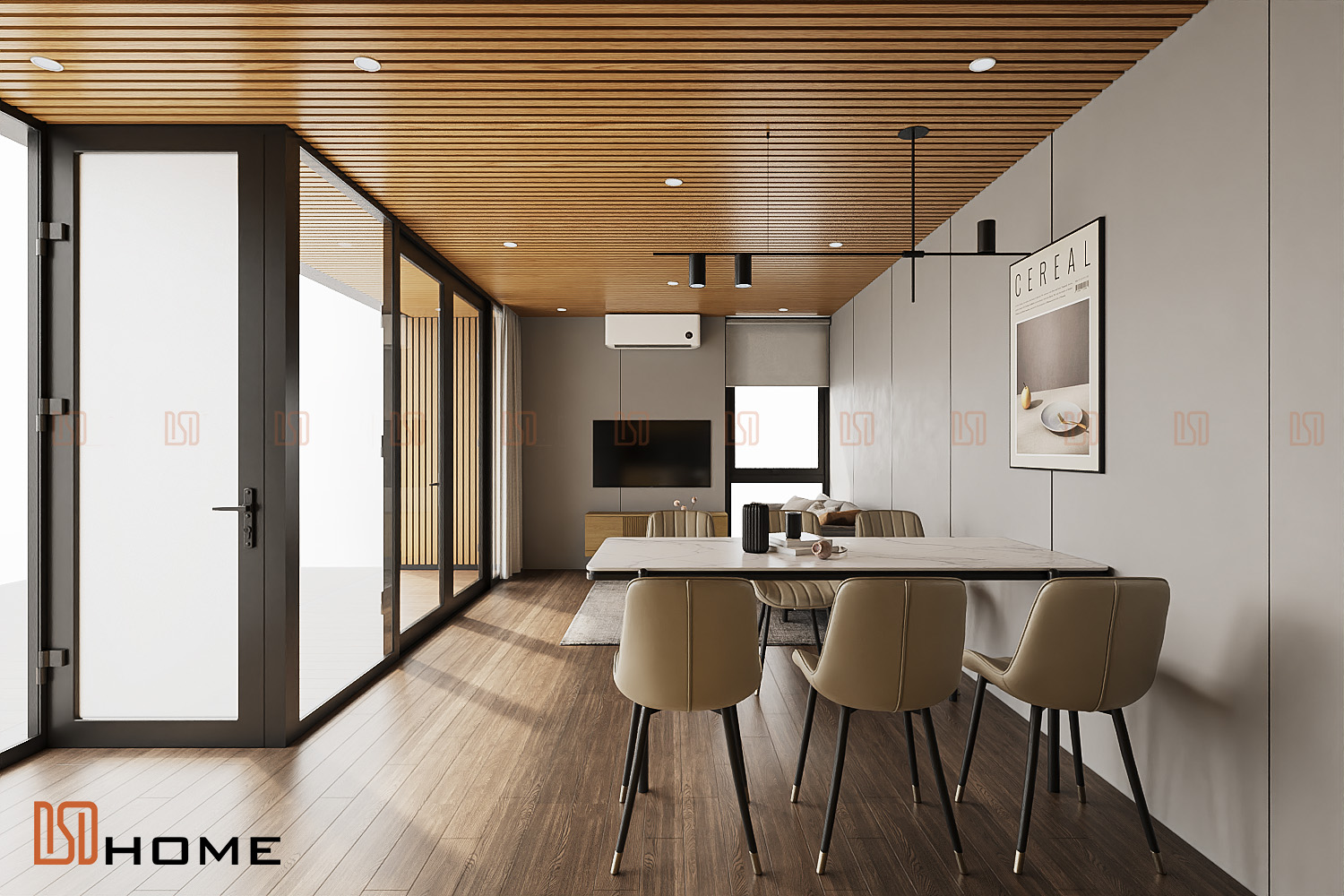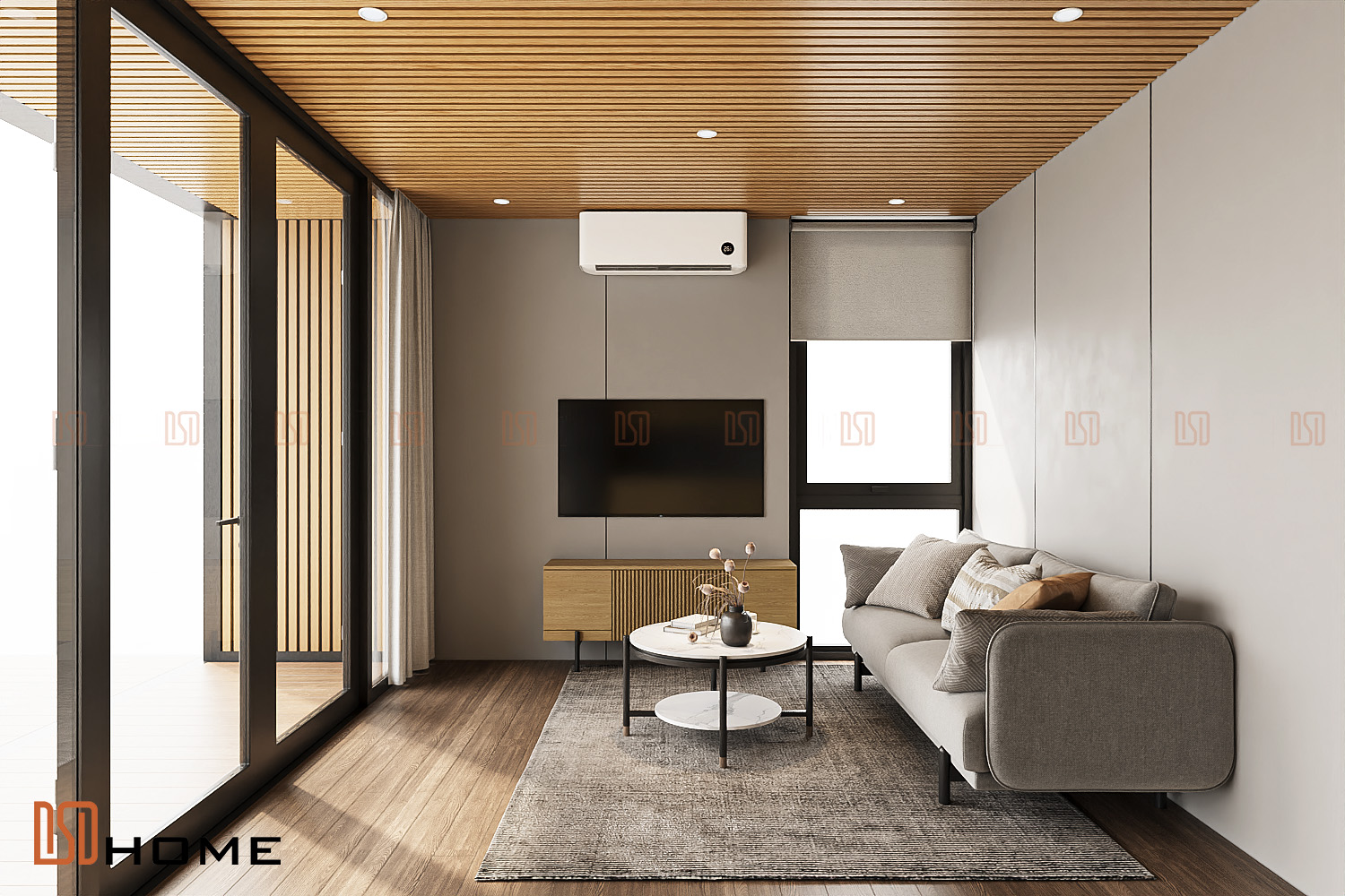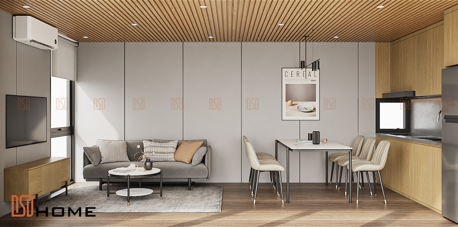 Trong ngôn ngữ thiết kế đương đại, màu vàng gỗ tự nhiên chỉ là một sắc thái, mà là biểu tượng của sự trưởng thành và tinh tế. Không gian phòng khách DSDhome được thiết kế để trở thành tâm điểm của sự sang trọng, nơi phong cách tối giản (Minimalism) lên ngôi.