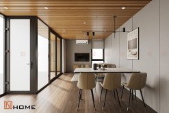 • Trần nhà hiện đại: Sử dụng trần lam gỗ nhựa có khả năng cách âm, cách nhiệt, chống ẩm, chống mối mọt và đặc biệt thân thiện với môi trường.