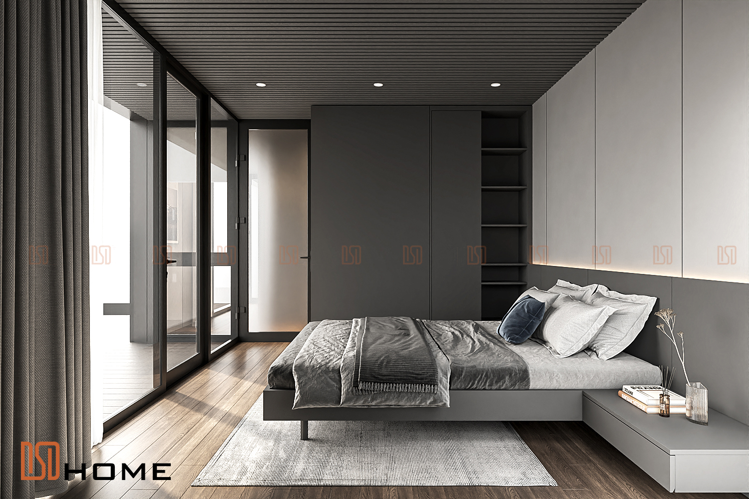 Sau một ngày dài, phòng ngủ chính là nơi ta tìm về sự thư thái. Tone màu ghi đậm trong Combo nội thất phòng ngủ DSDhome mang lại cảm giác an tâm, tĩnh lặng, hỗ trợ tối đa cho giấc ngủ sâu.