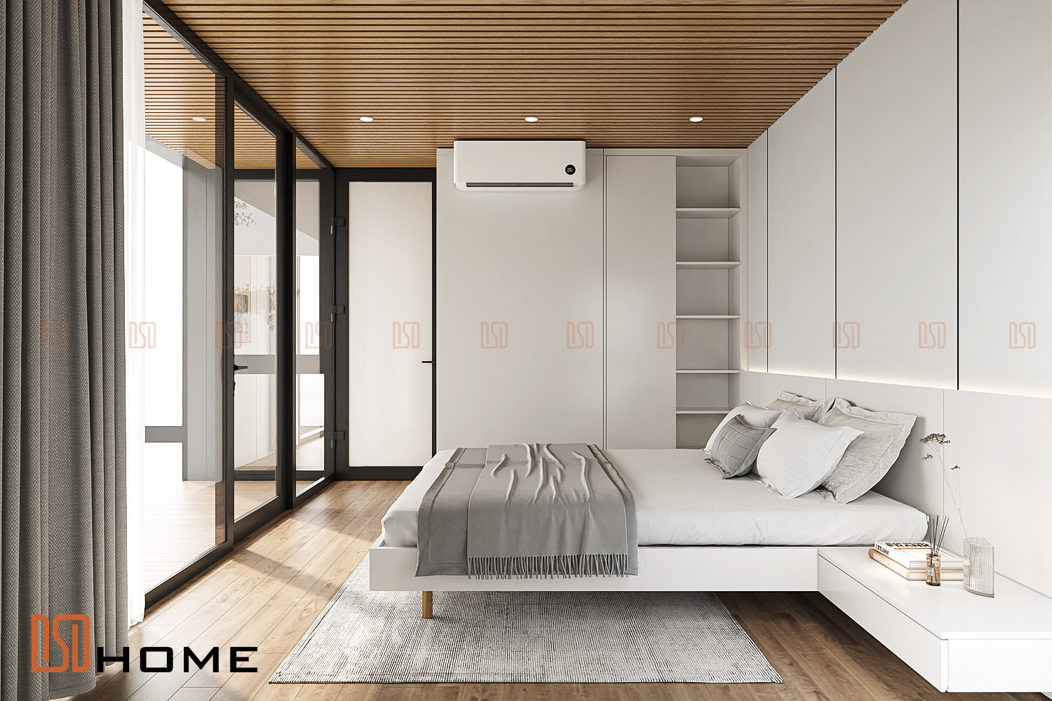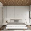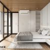 • Thiết kế tối giản, tinh tế: Giường ngủ được thiết kế dạng khối thấp hiện đại, kết hợp với hệ tủ quần áo âm tường màu xám đồng bộ tạo nên một chỉnh thể thống nhất. Ánh sáng được bố trí giấu sau vách đầu giường tạo điểm nhấn ấm áp và lãng mạn.