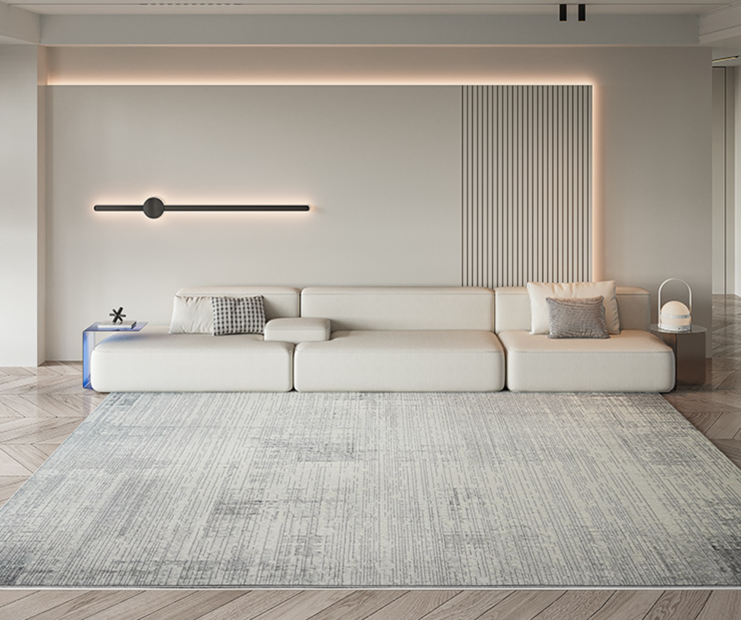 Trong phòng khách nhà phố và căn hộ chung cư, ME01 giúp định hình rõ khu vực sofa, tạo sự liên kết thị giác giữa các món nội thất và mang lại cảm giác ấm cúng hơn cho không gian sinh hoạt.